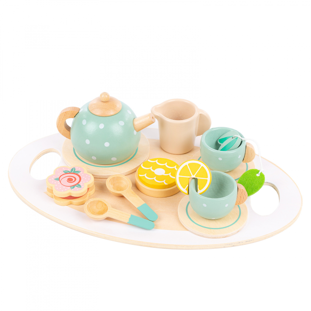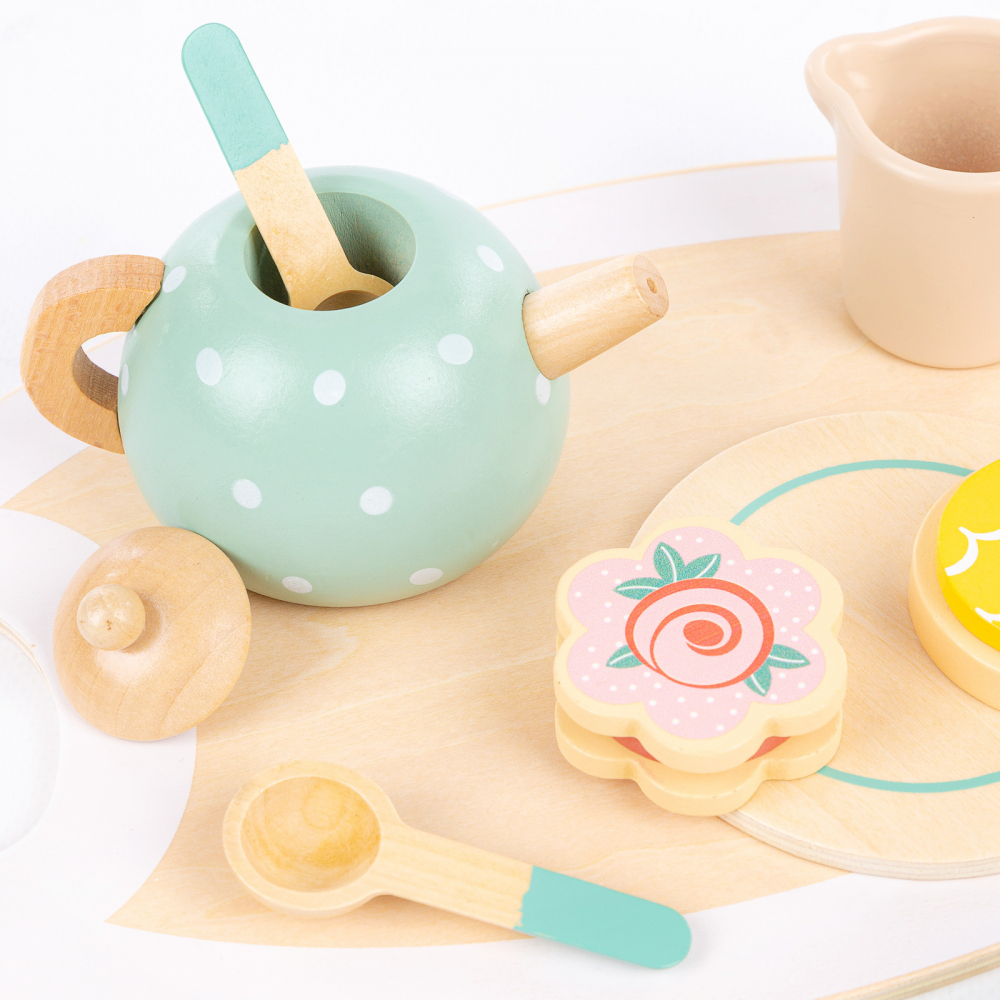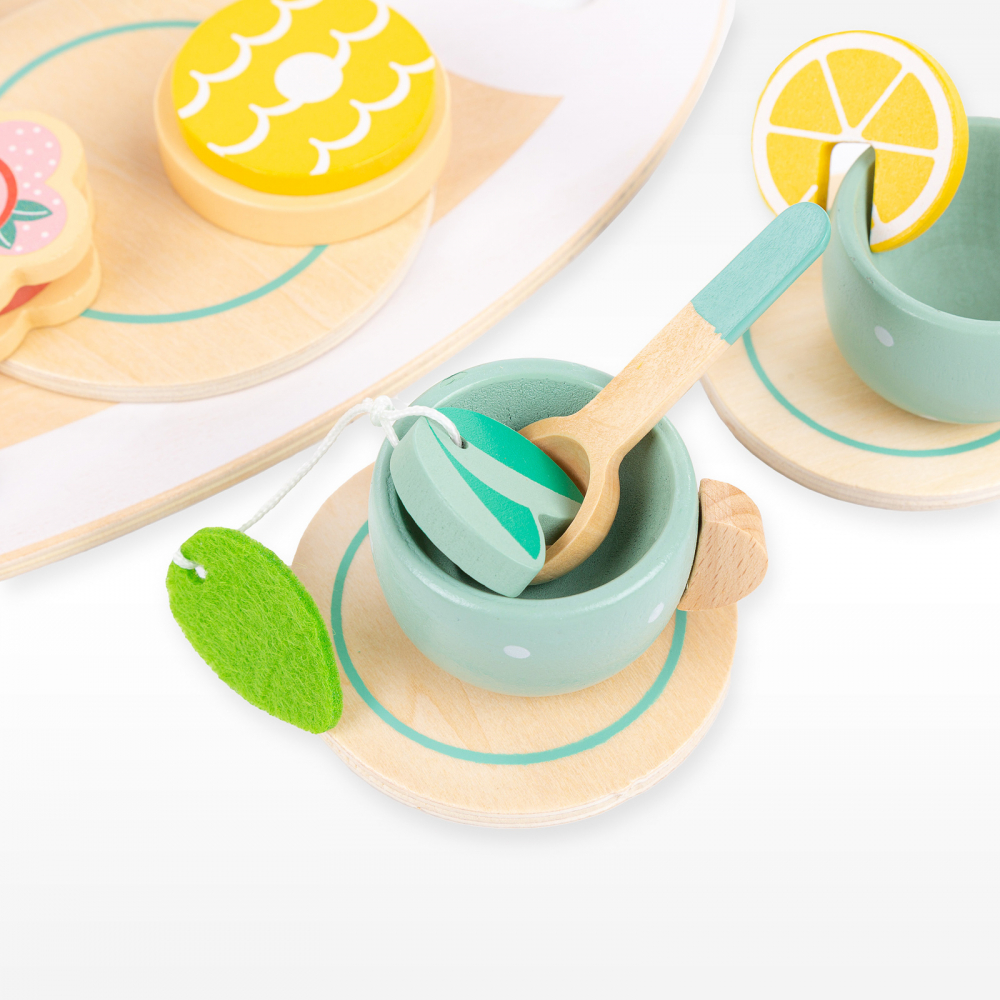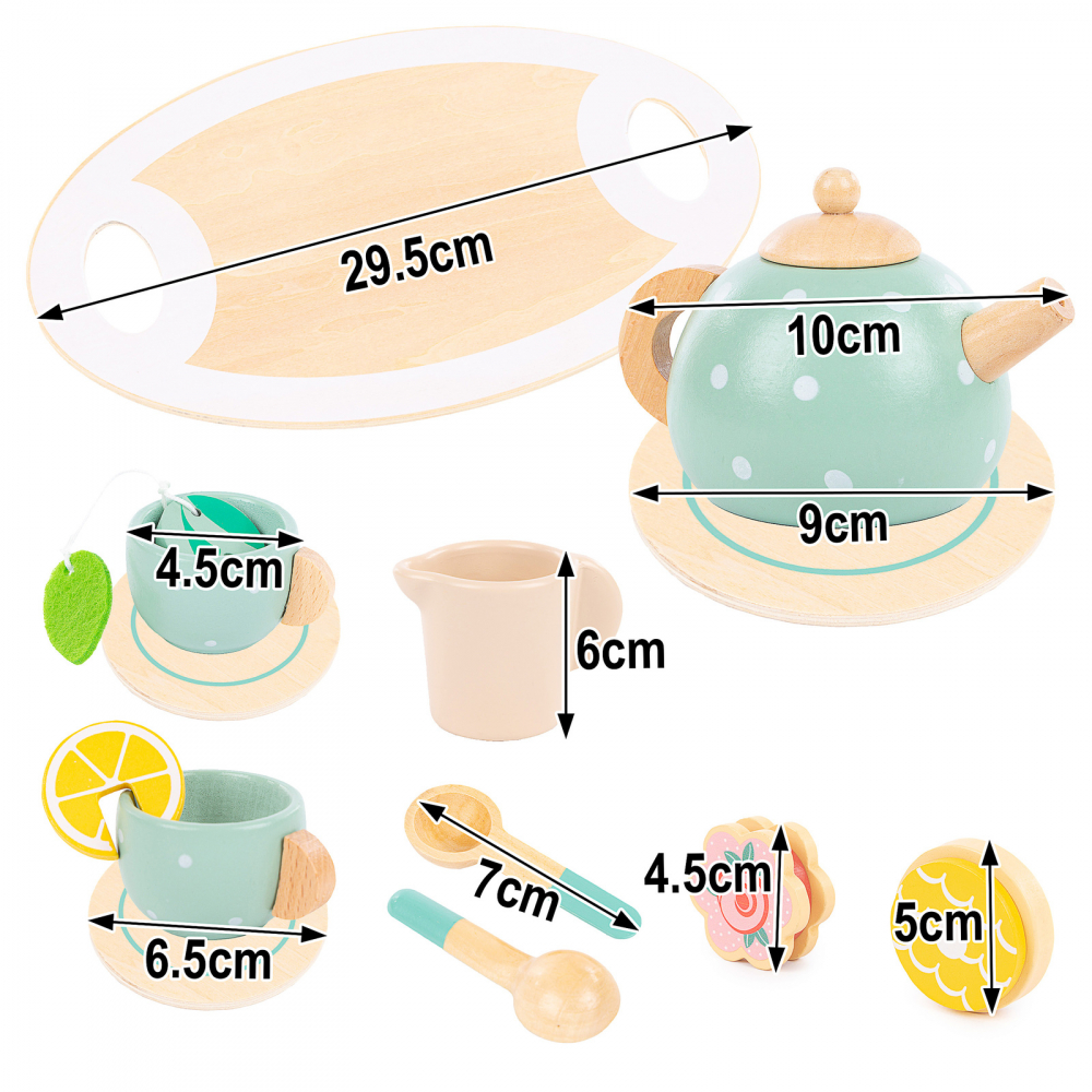 Jocul dezvolta imaginatia copilului, forme distinctive, coordonarea ochi-mana si abilitatile motorii fine - savurati un ceai delicios cu un set de ceai din lemn!