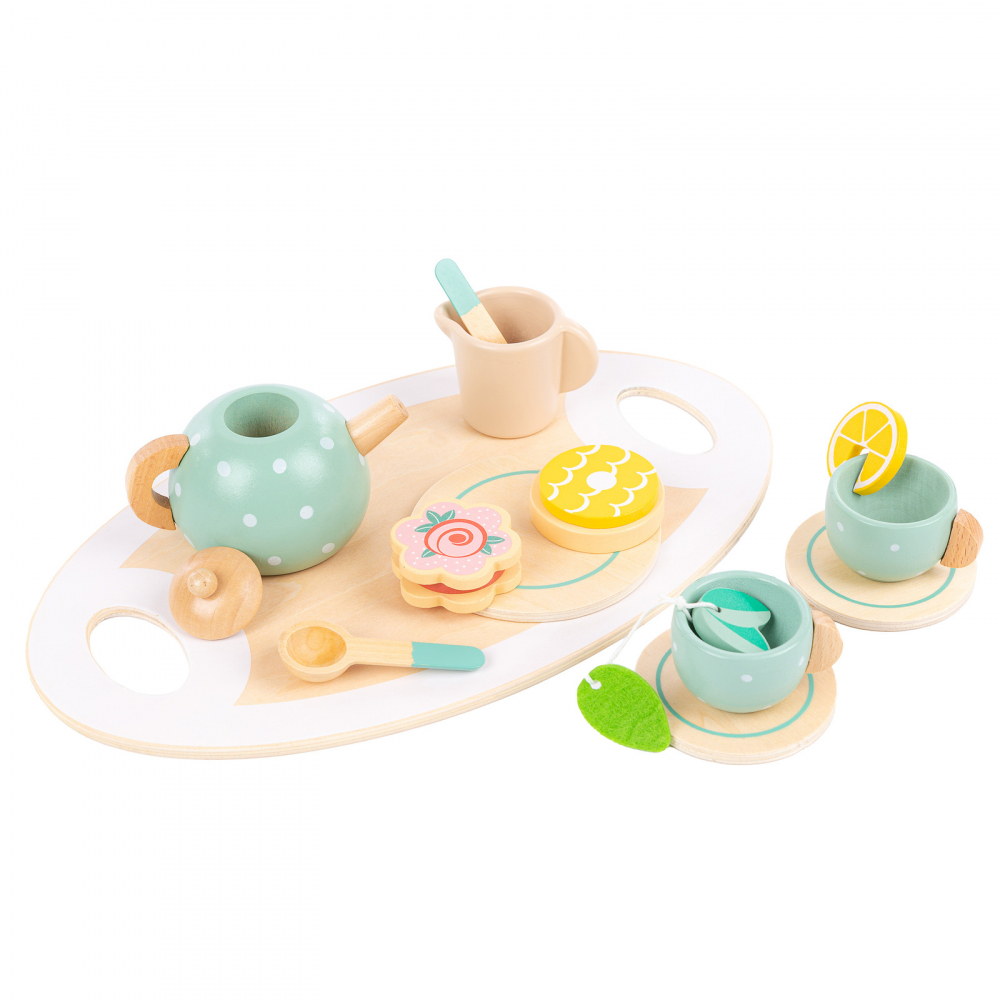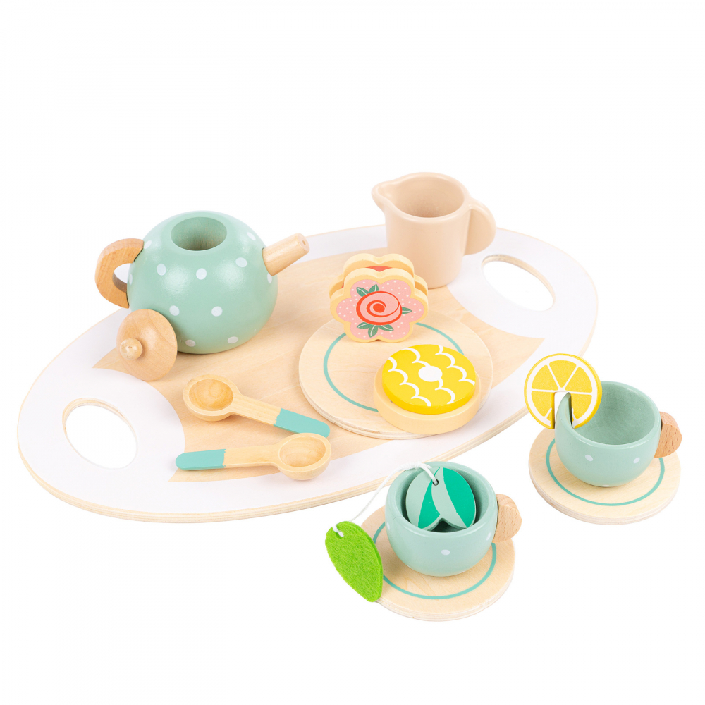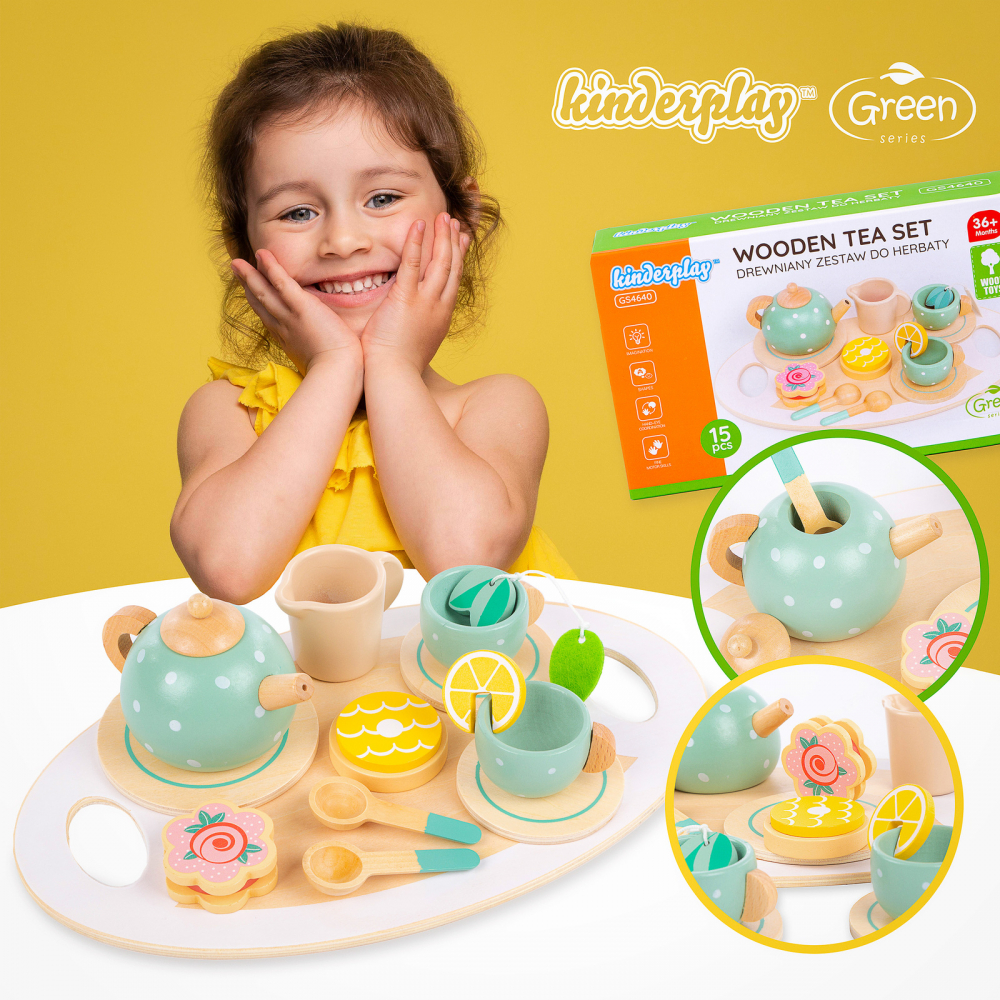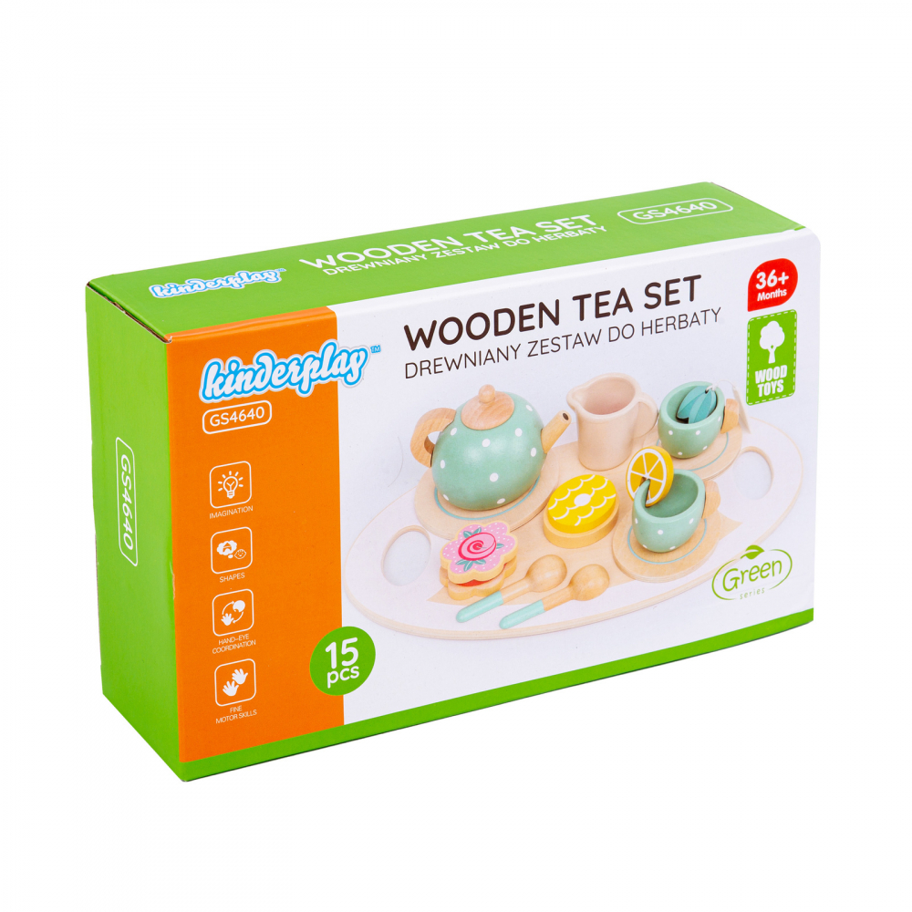 Set de ceai din lemn Kinderplay cu 15 accesorii