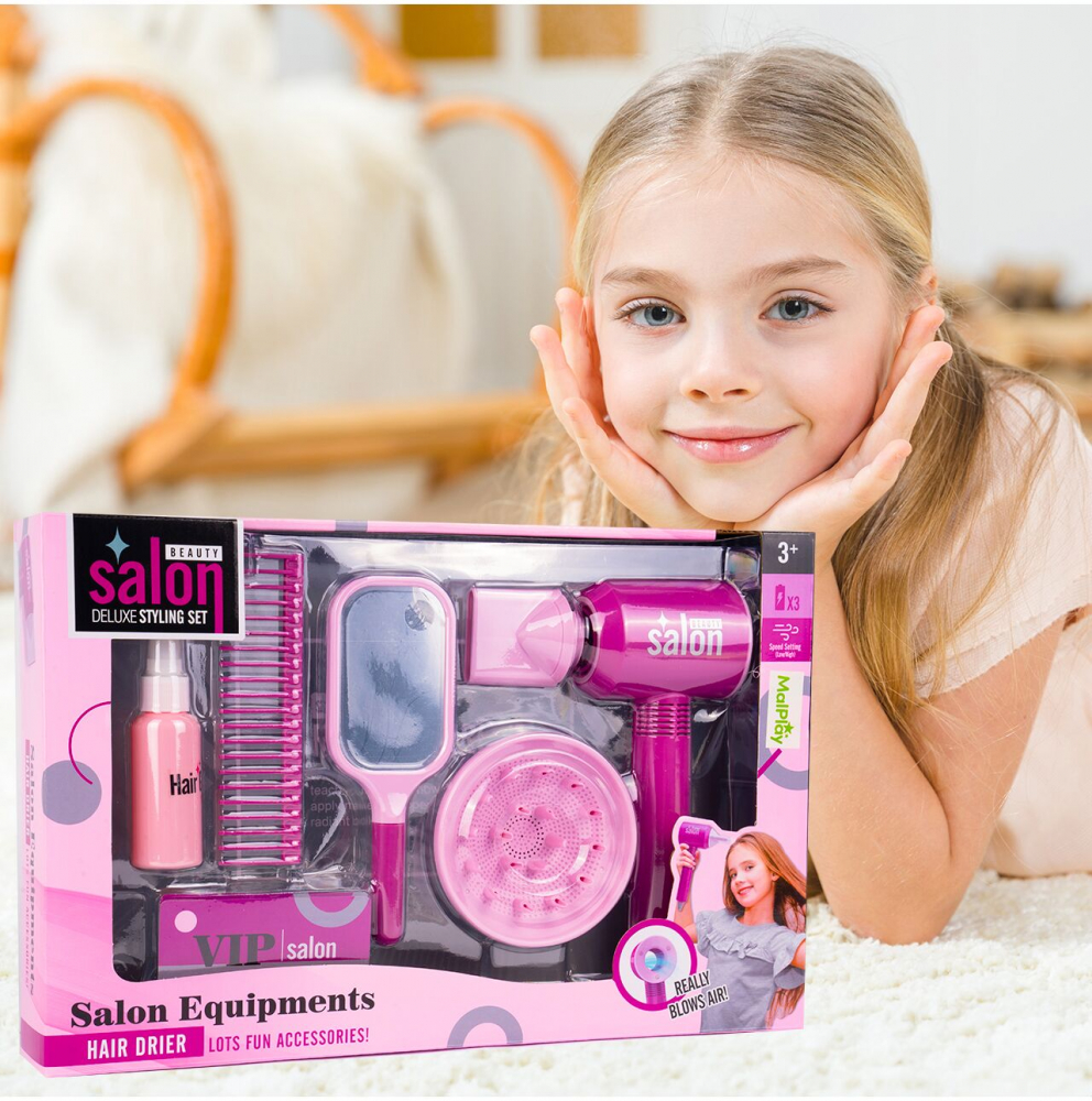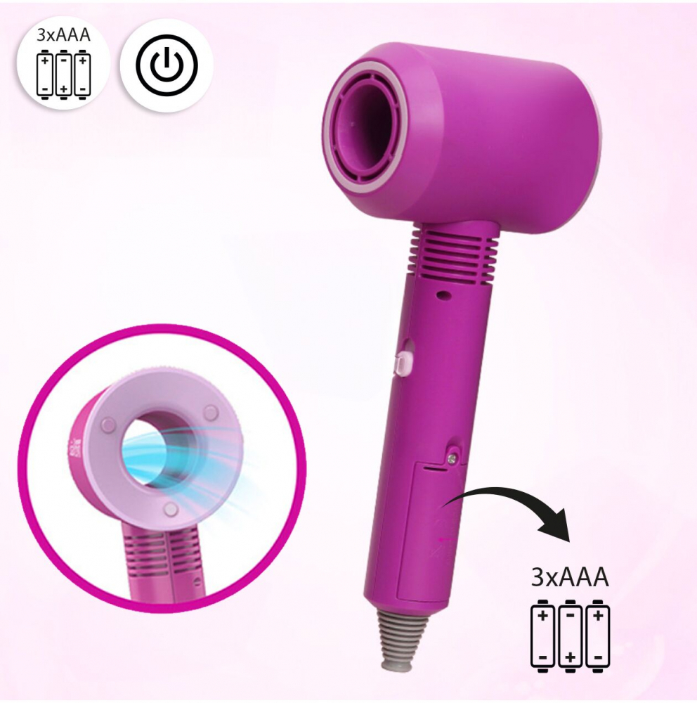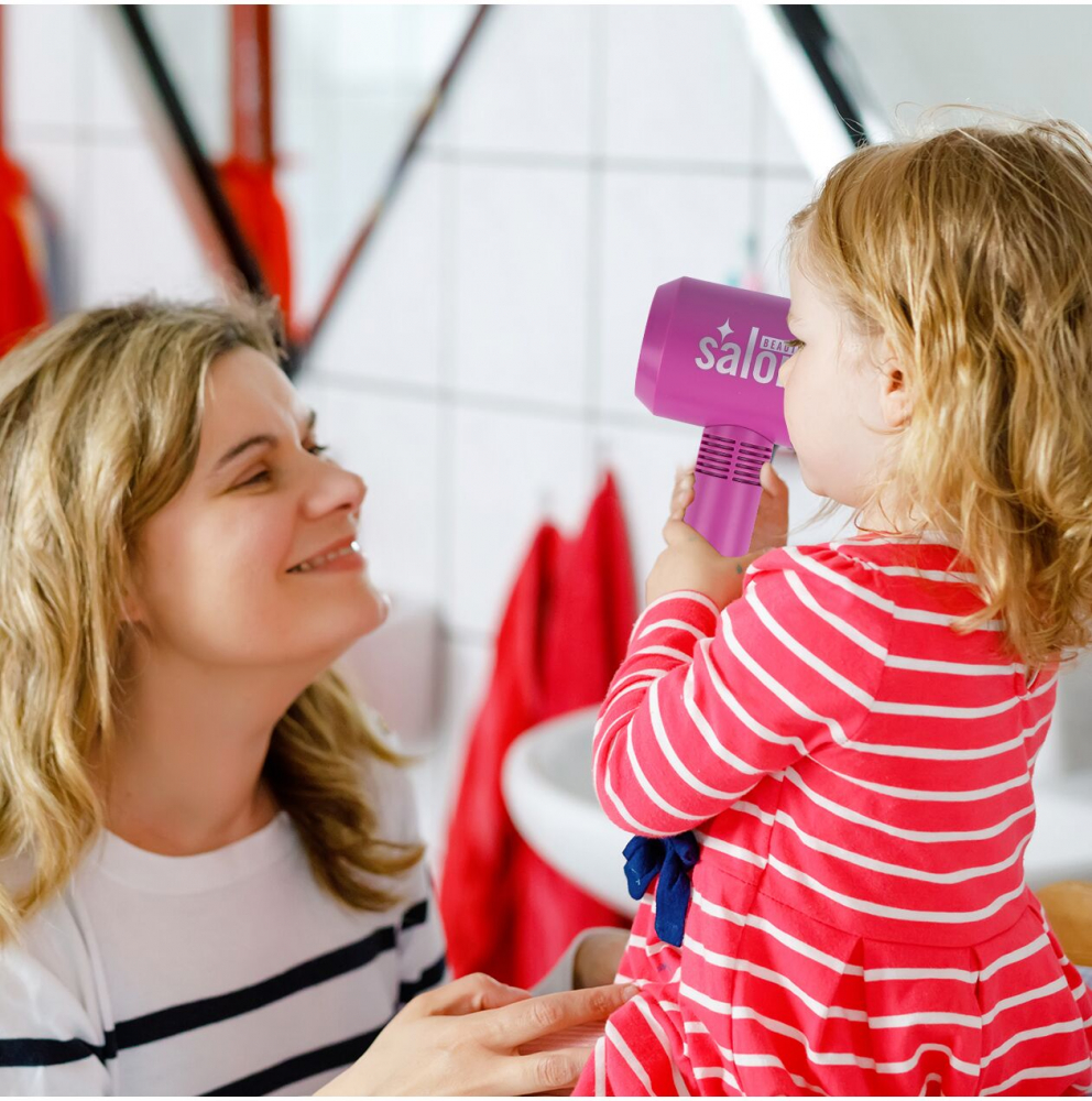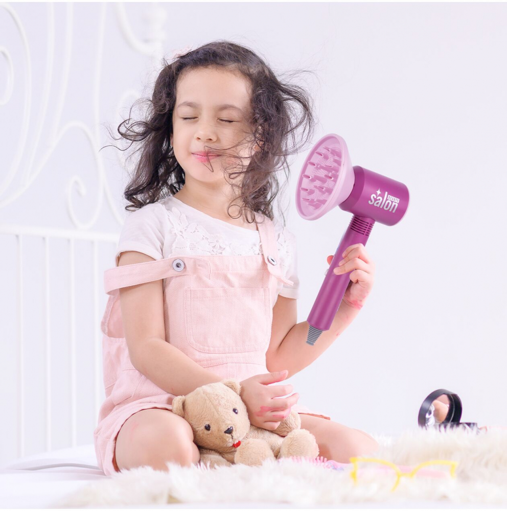 Un uscator de par care sufla aer permite copiilor sa se simta ca niste adevarati stilisti. Alimentat de trei baterii AAA, este sigur si usor de utilizat, ceea ce îl face perfect joaca atat acasa, cat si in calatorii.