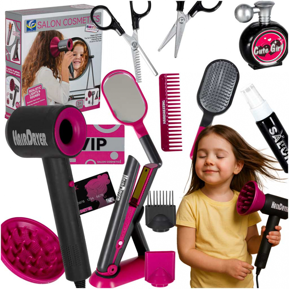 Set de coafura pentru copii, uscator functional, placa cu sunete si lumini, pana la 20 elemente incluse