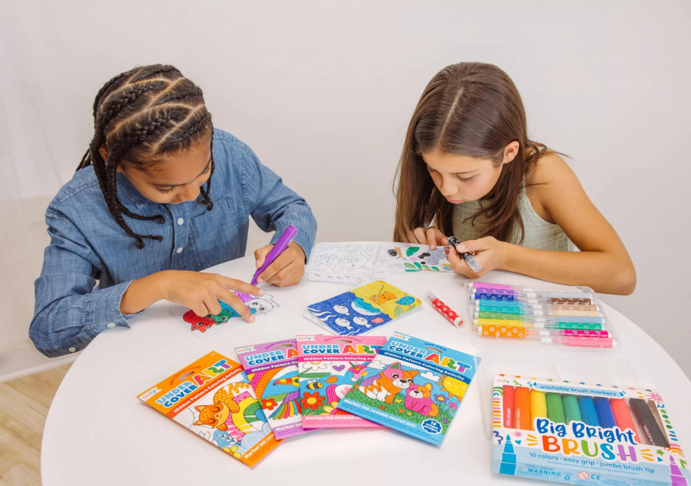 Pentru a dezvălui modelele ascunse, colorează ilustrația cu markerul Ia în considerare folosirea markerelor OOLY precum Big Bright Brush sau Color Together