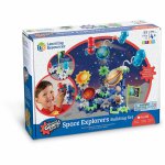 Setul include 77 piese :rotite rezistente de plastic, placute ce vor alcatui baza constructiei, figurine cu astronauti, nave spatiale, planete (inclusiv Soarele), o foaie cu abtibilduri decorative, instructiuni in limba engleza.