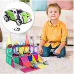 Set de constructie 3D cu blocuri magnetice si 20 de masinute, 68 de piese