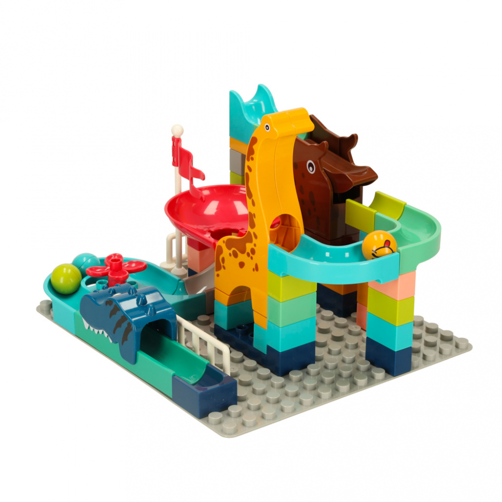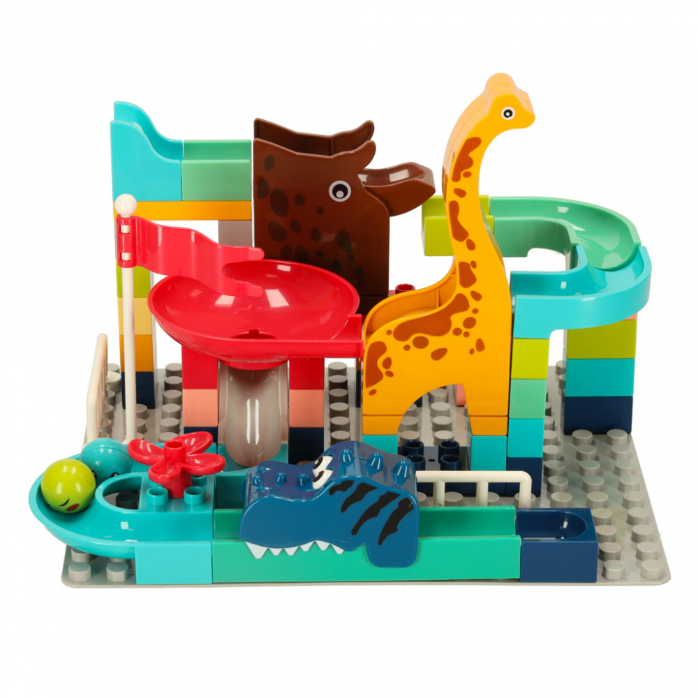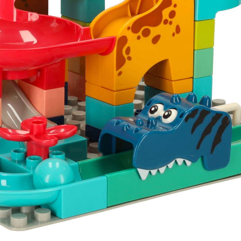* Cu ajutorul acestor piese speciale, vei putea construi o pista spectaculoasa pentru bile, in forma de parc de dinozauri!