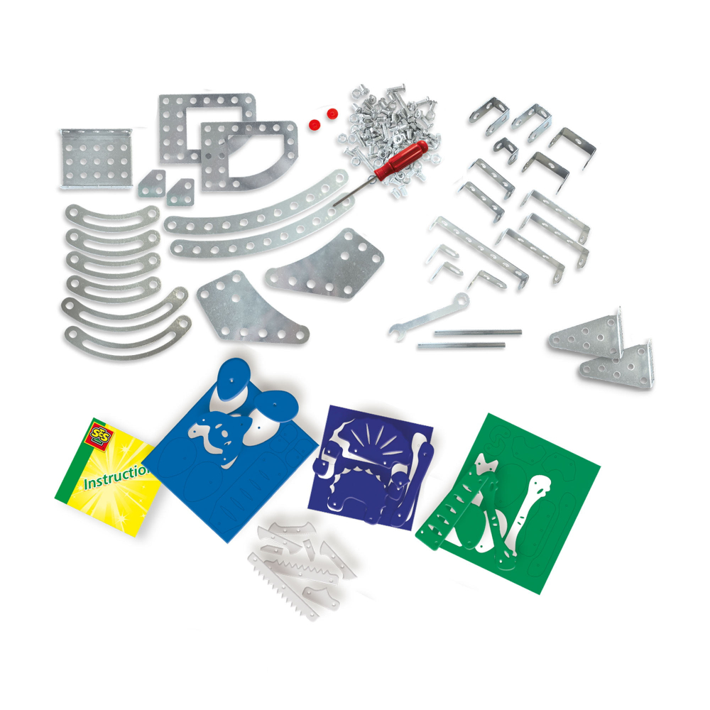 Cu acest set de constructie de dinozauri din metal, fanii dinozaurilor se pot bucura construind un Triceratops si Spinosaurus.
