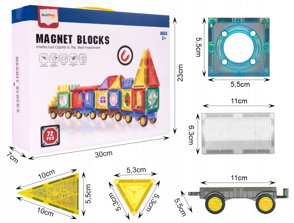 * Materialul din care sunt fabricate blocurile magnetice este din plastic ABS de cea mai inalta calitate, cu o structura neteda.