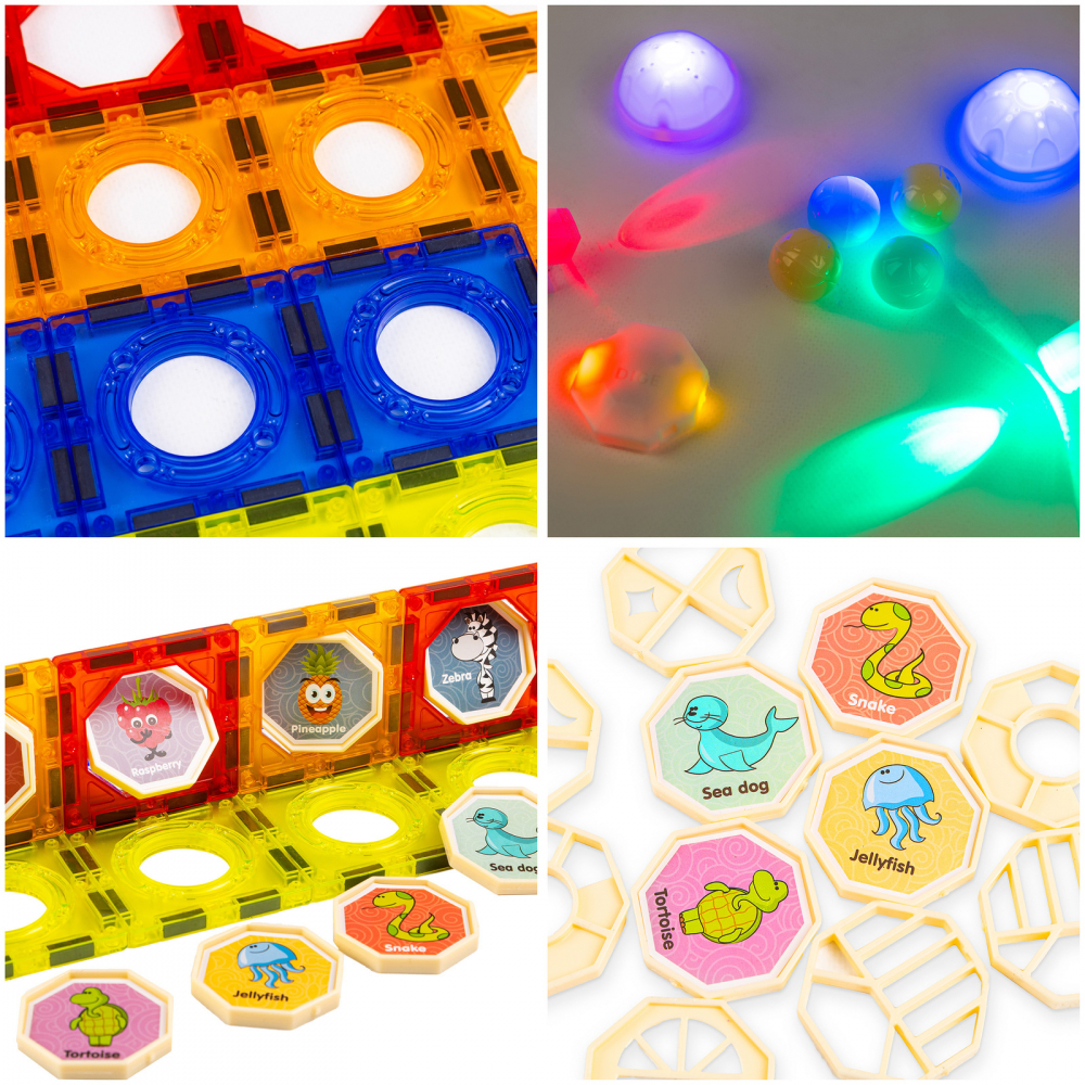 - mai multe posibilitati - sinele noastre pot fi combinate cu usurinta cu alte seturi de blocuri magnetice, ceea ce va ofera si mai multe posibilitati de constructie.