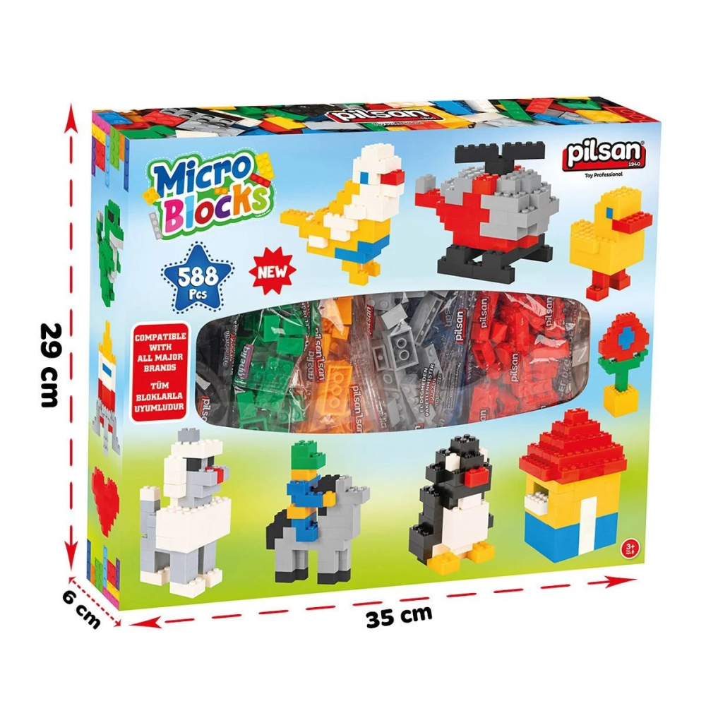 Set de constructie pentru copii peste 3ani Pilsan cu 588 bucati micro cuburi Micro Blocks