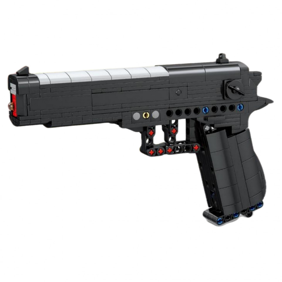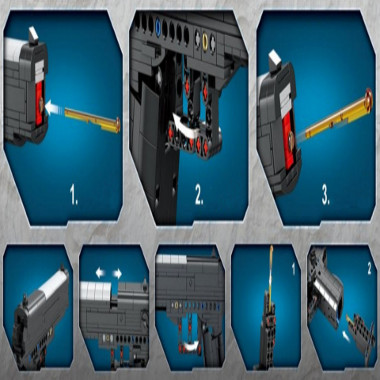 Piesele sunt compatibile LEGO si alte marci de seturi de construit Manual de instructiuni usor de urmat Mecanismul pistolului este unul delicat, neprezentand pericol de ranire in urma declansarii.
