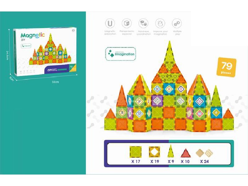 79 de piese magnetice cu margini solide, compatibile cu alte placi similare.