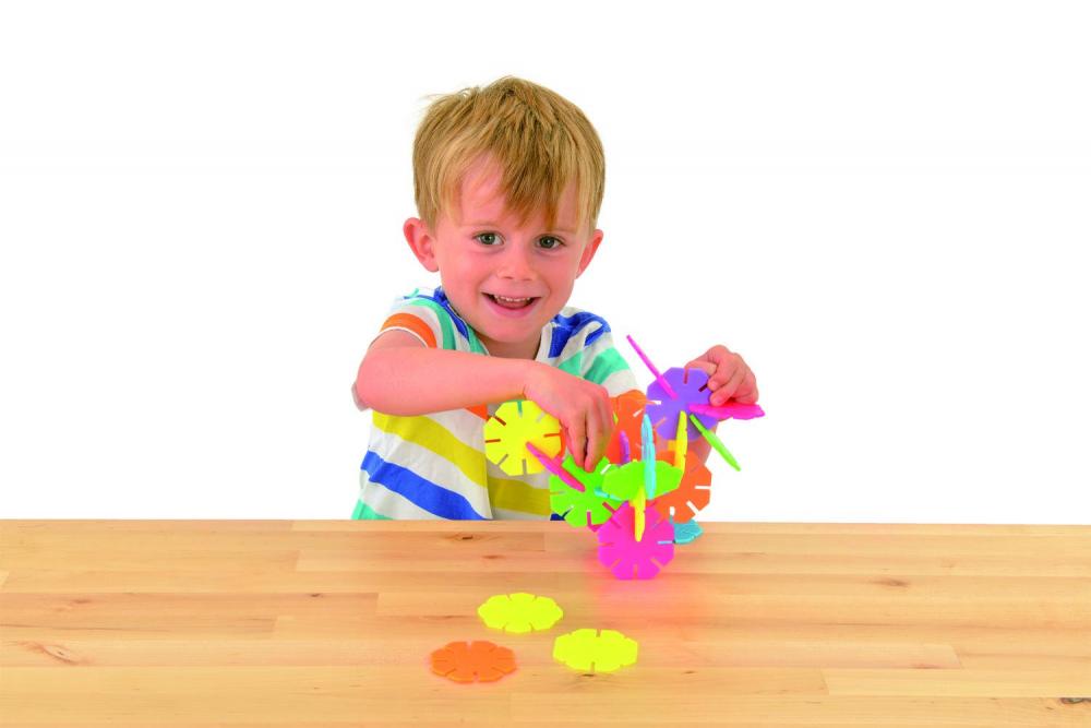 Incurajeaza-ti copilul sa isi foloseasca imaginatia, construind cu aceste discuri amuzante. Discurile sunt colorate si pot fi unite intre ele de manutele mici ale copiilor, cu scopul de a forma modele cat mai ciudate si distractive.