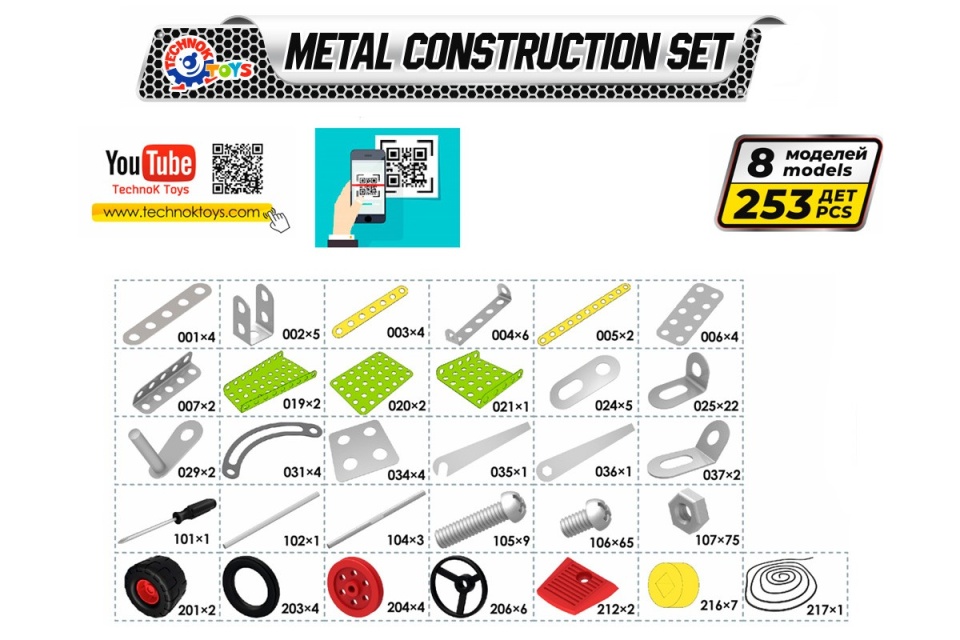 Set de construit metalic TechnoK cu 8 modele de vehicule agricole 253 de piese