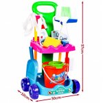 Set de curatenie cu Carucior mobil echipat cu Galeata, Mop, Perie si diverse accesorii de curatenie realiste, 57 x 30 x 10 cm, Little Helper