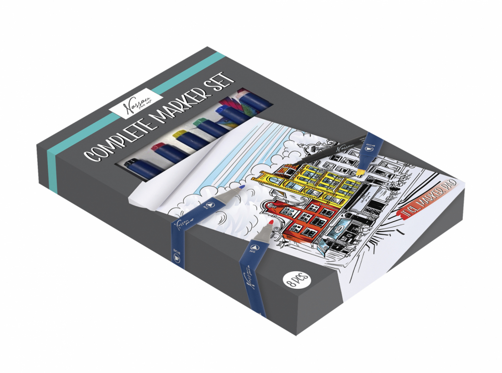 Set de desen A5 cu 6 markere duble Fine Art Nassau