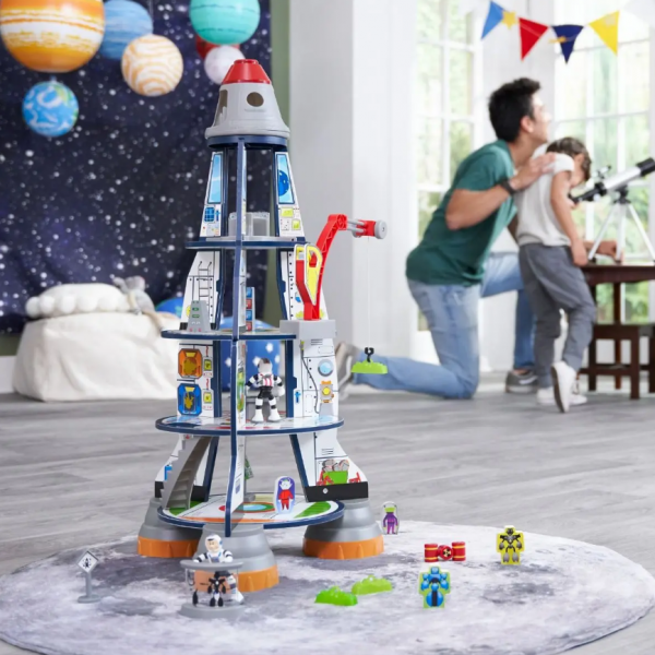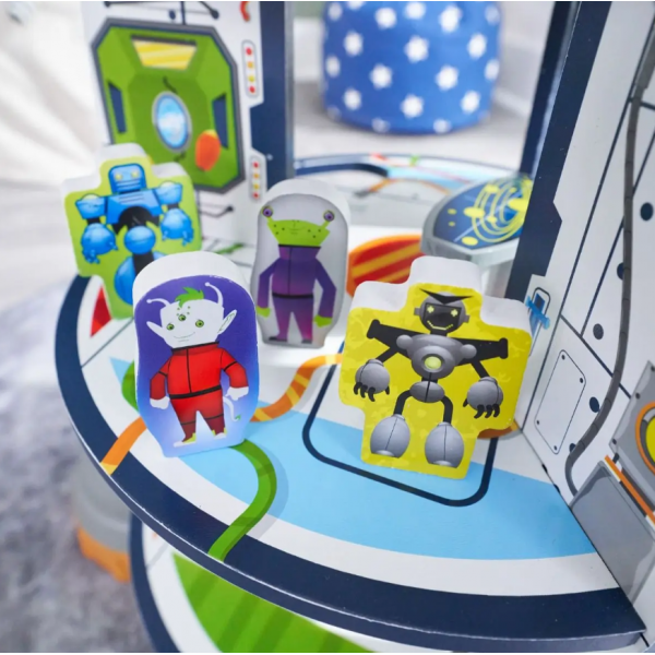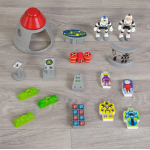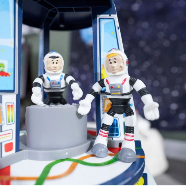 Un echipaj de astronauti indoibili, extraterestri din lemn, roboti si multe altele sunt incluse pentru un jocul de rol imaginativ galactic.