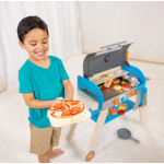 Incepeti un joc imaginativ de simulare cu un gratar din lemn, un afumator si un set de joaca pentru cuptor pentru pizza, complet cu mancare si condimente de joaca din lemn si pasla, ustensile rezistente, tigaie si paleta pentru pizza din lemn.