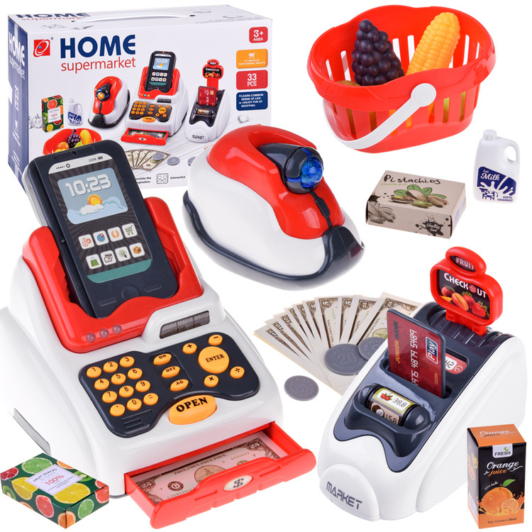 Set de joaca Mini Market pentru copii, cu casa de marcat, cititor de carduri, scaner si accesorii specifice incluse