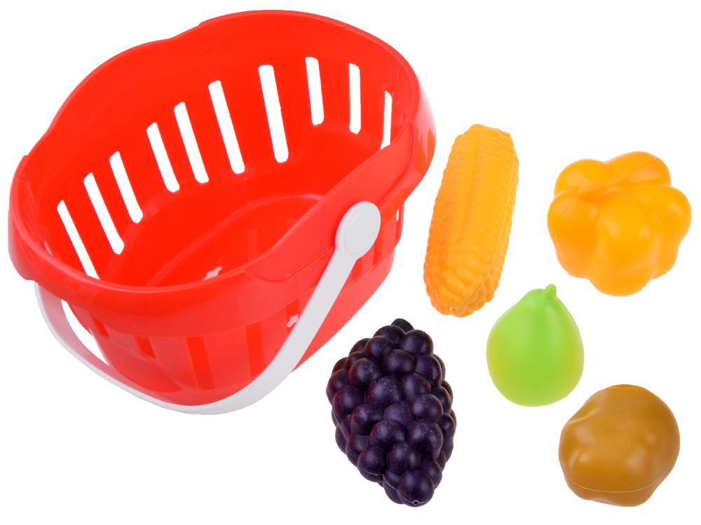 Alimente/Produse: Sticla de lapte, sticla de lapte (dublu listata, posibil o greseala in original), legume (porumb, ardei, cartofi), fructe (pere, struguri), cutii de carton (suc de portocale, fistic, bomboane cu fructe).