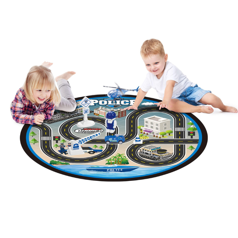 Setul de joacă cu pătură și temă de politie este ideal pentru copiii interesați de aventură.