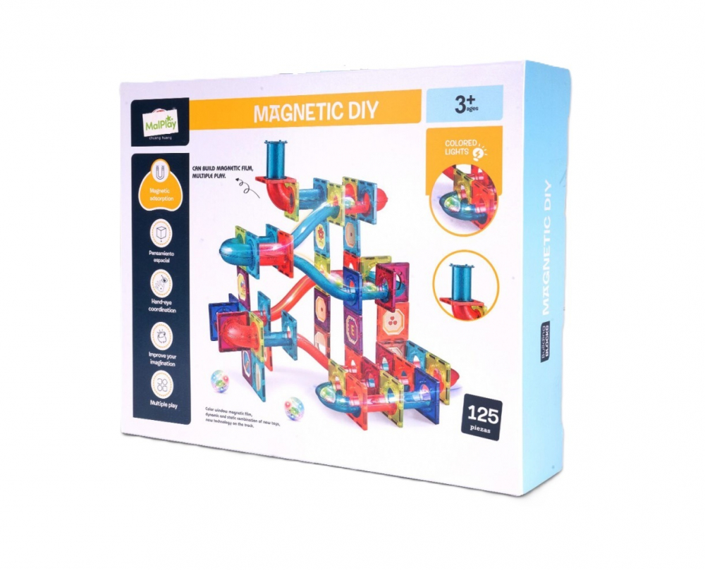 Set de joaca pentru copii, Malplay, cu 125 piese magnetice de construit 3d, cu bile luminoase, multicolor