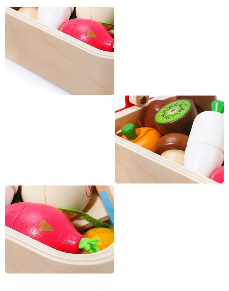 1. Aspect realist: Legumele din set arata ca cele reale, astfel incat copilul tau sa poata imita miscarile de taiere si sa invete sa recunoasca diferite forme si culori.