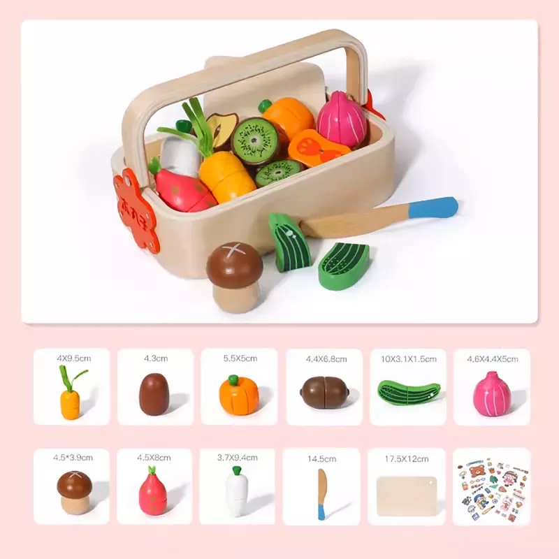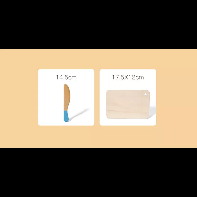 4. Cutit: Setul include si un cutit din lemn, acesta fiind potrivit pentru mainile mici, astfel ca micutul tau isi poate exersa cabilitatile de taiere fara a se pune in pericol.