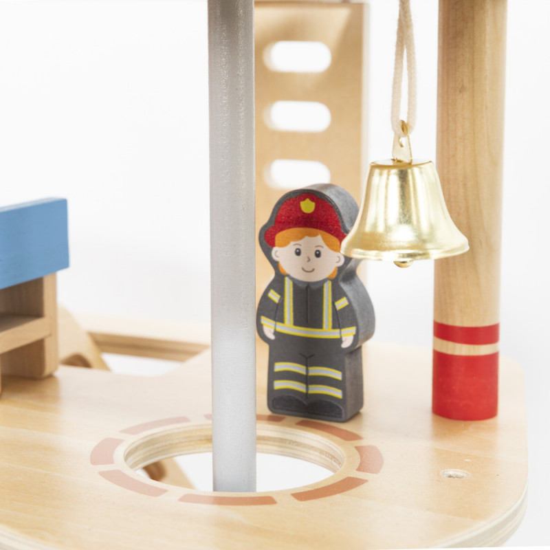 - Statie Complet Echipata: Parterul spatios este ideal pentru parcat masina de pompieri si depozitat uneltele. Etajul 2 are o zona de odihna pentru pompieri, cu un clopotel functional si un tobogan pentru interventii rapide. Etajul 3 este perfect pentru elicopterul de salvare.
