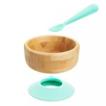 Acest bol robust din bambus este proiectat cu o baza puternica de aspirare pentru a preveni varsarile, in timp ce lingura sa din silicon potrivita este blanda cu gingiile sensibile ale bebelusului.