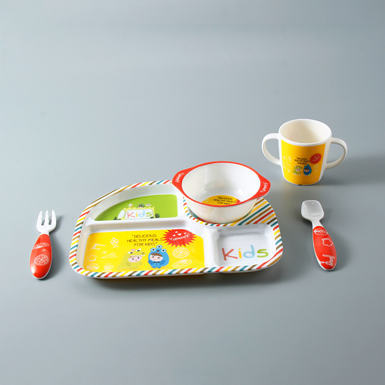 - Setul de masa compus din 5 piese :lingurita, furculita, farfurie, cana, castron.