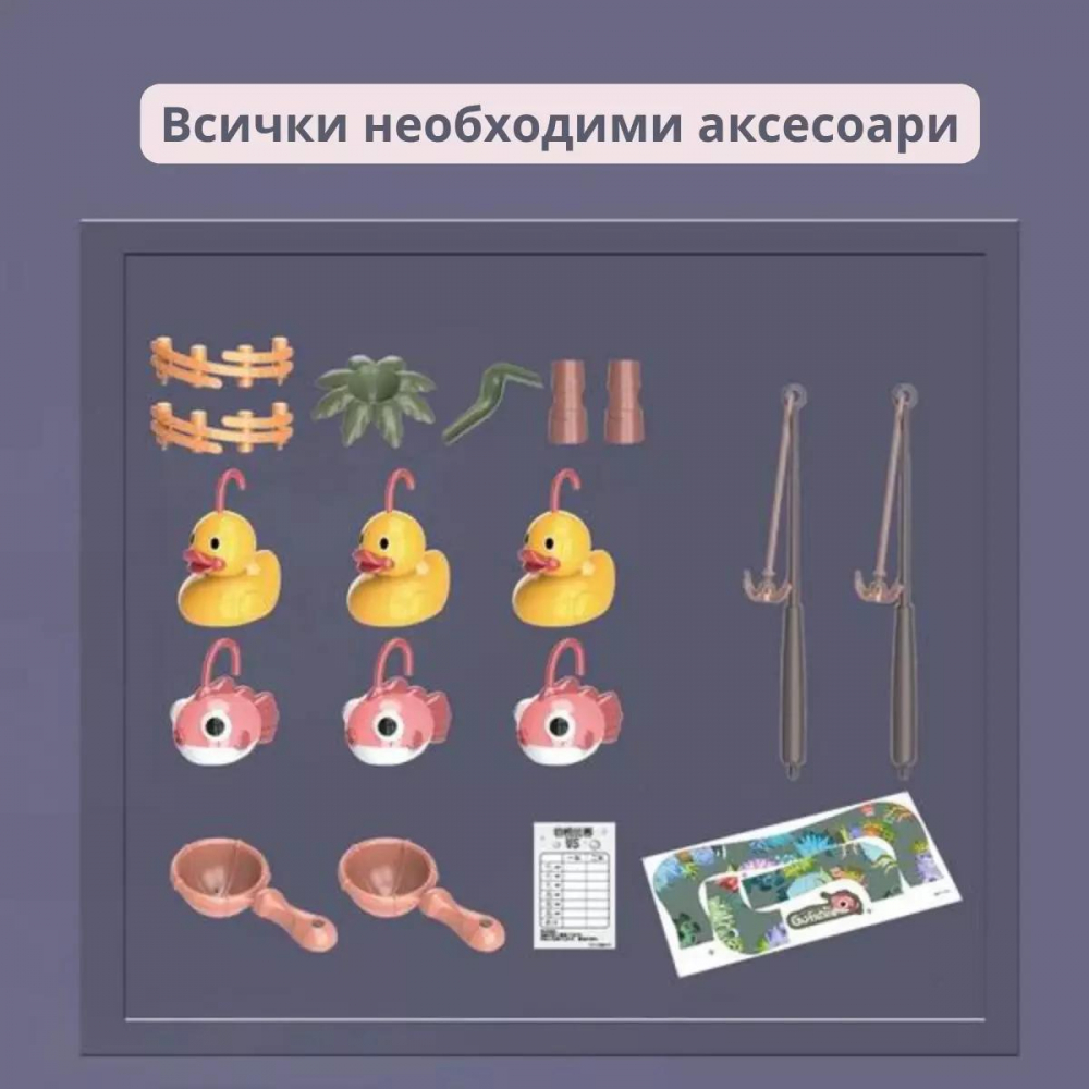 Iaz și accesorii – plante, autocolante pentru iaz, rațe și pești, 2 undițe etc.