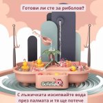 Introduceți bateria, umpleți cu apă, apăsați butonul - începe să se rotească. Rațele și peștii vor începe să se miște, crescând dificultatea jocului. Dacă îți va fi mai ușor - folosește lingura cu găuri și fă o cascadă amuzantă cu cealaltă!