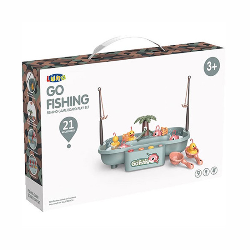 Jocul contine 2 undite, 3 ratuste, 3 pestisori, 1 recipient si alte accesorii. Este usor de folosit, introduceti bateriile, umpleti cu apa recipientul, apasati butonul ON, dupa care acesta incepe sa se invarta. Ratustele vor incepe sa se deplaseze cu scopul de a face jocul mult mai dificil. Castigatorul este cel care prinde cele mai multe ratuste si pestisori cu ajutorul celor doua undite. Pentru ca jocul sa fie mai distrativ, puteti alege dintre cele 6 melodii diferite.