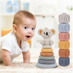 Set de stivuit cu 13 piese senzoriale din cauciuc moale Grey Koala