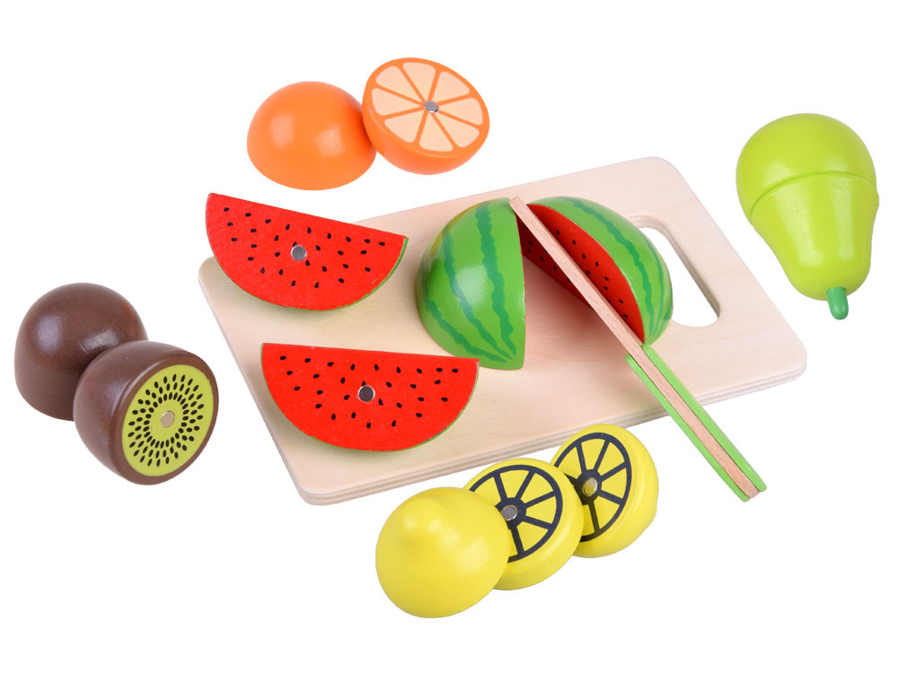 Legumele, fructele si pestele sunt echipate cu magneti puternici, permitandu-le sa fie "taiate" cu usurinta in jumatati sau chiar sferturi (in cazul pepenelui verde!).