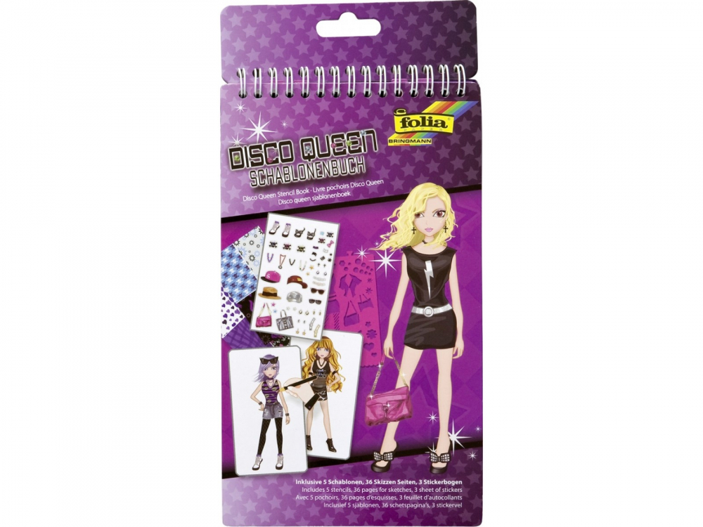 Cu acest set de desen cu sabloane, copilul poate crea imagini grozave pe tema Reginei discotecii.