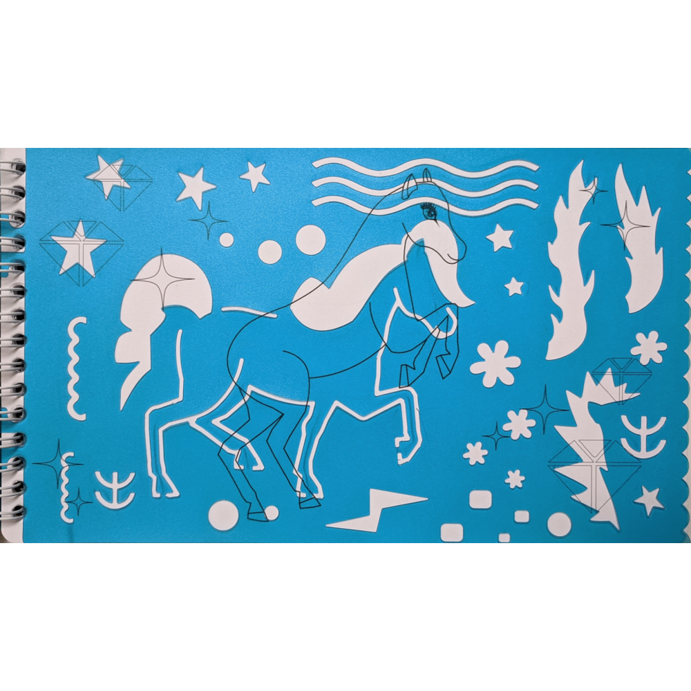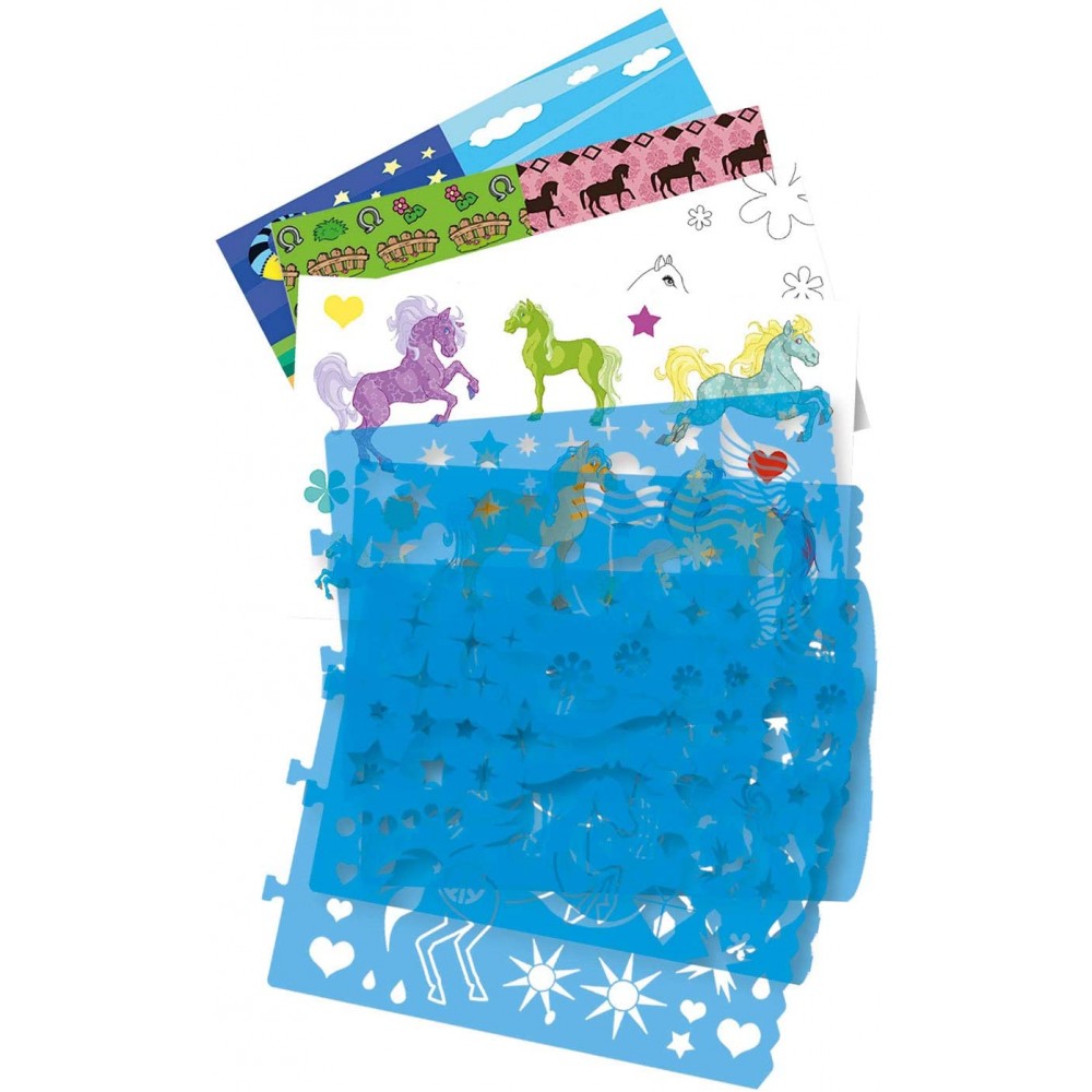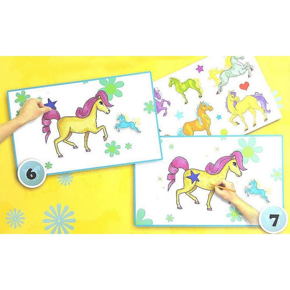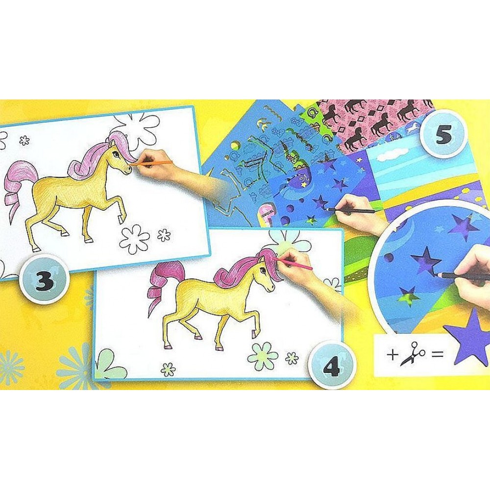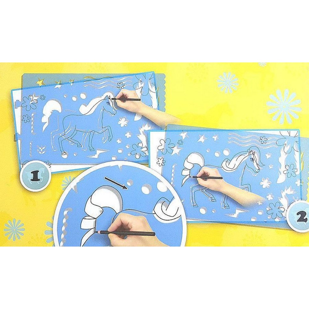 Cu acest set de desen cu sabloane, copilul poate crea imagini grozave pe tema fermelor de ponei.