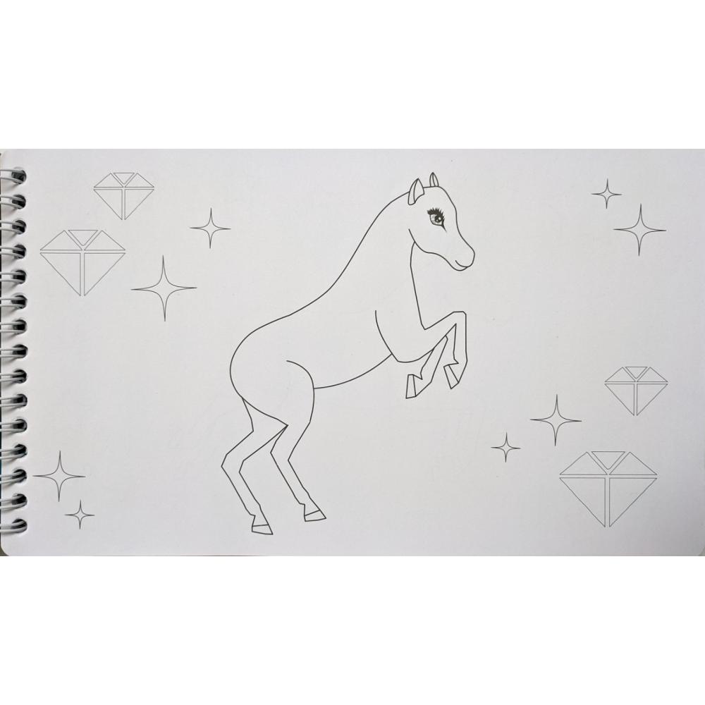 Cu ajutorul celor 36 de pagini de colorat incluse si a celor 5 sabloane pot fi desenati caii, poneii si multe altele, in cel mai scurt timp.