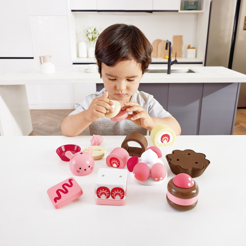 Copiilor le place sa-si invite membrii familiei si prietenii la ora ceaiului cu acest set de joaca dragut cu desert – prajiturile de capsuni cu aspect delicios sunt colorate si distractive!