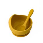 Set diversificare pentru copii castron cu ventuza si lingurita din silicon Oaki galben