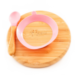 Set diversificare pentru copii castron, farfurie si doua lingurite din bambus Oaki roz
