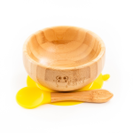 Set diversificare pentru copii castron si farfurie masinuta din bambus cu lingurita Oaki galben