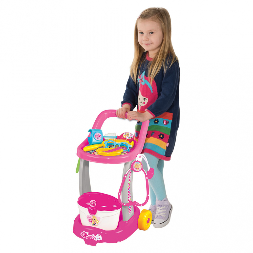 Setul contine 10 accesorii: un carucior pe doua roti,ce poate fi usor manevrat si care este echipat cu accesorii necesare unui viitor profesionist in domeniul medical: stetoscop, seringi, aparat de tensiune, ciocanele pentru reflexe, foarfece, ochelari, lupa, tavita.