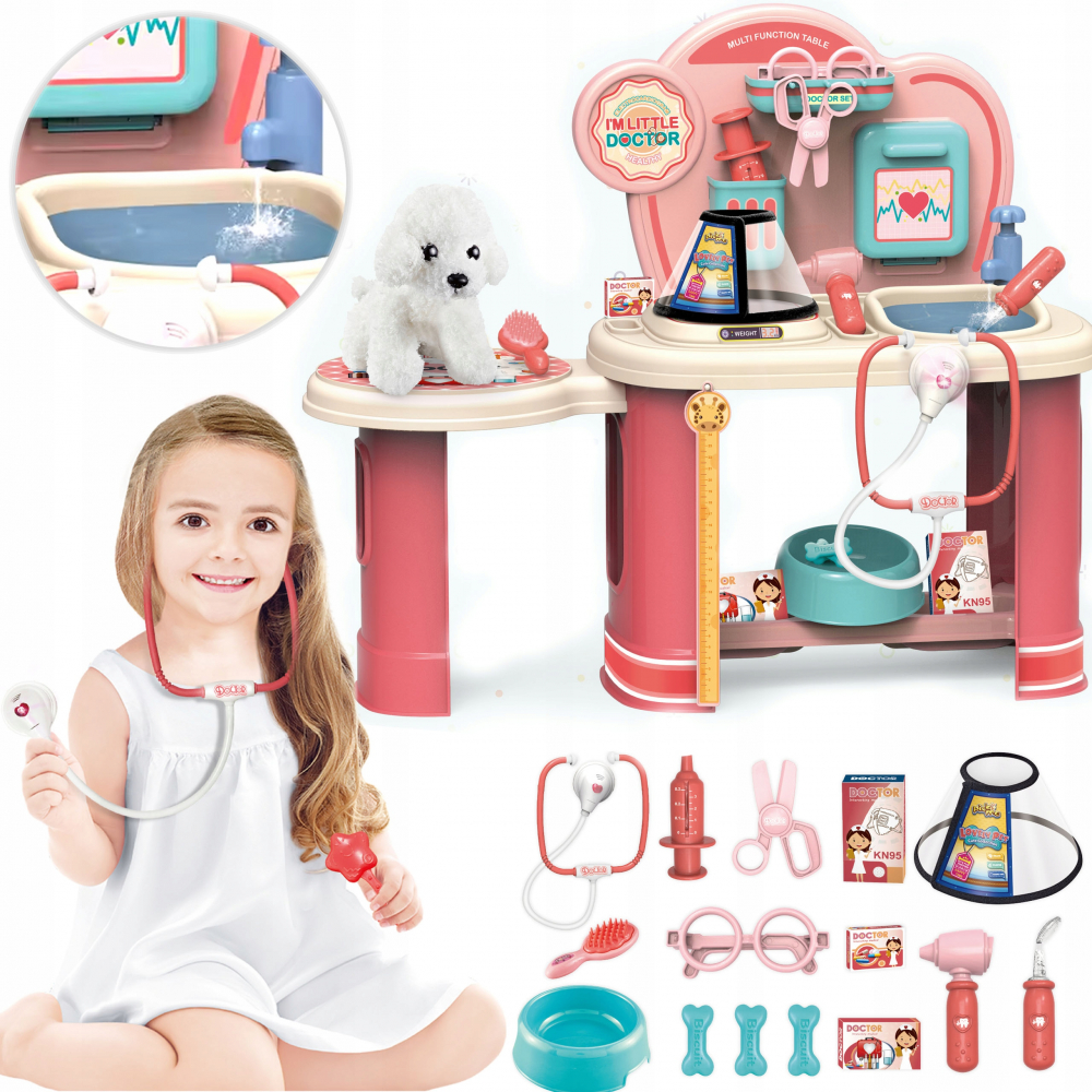 Set doctor veterinar pentru copii Matadi, masuta cu robinet functional cu circuit inchis de apa si Catelus de plus pacient