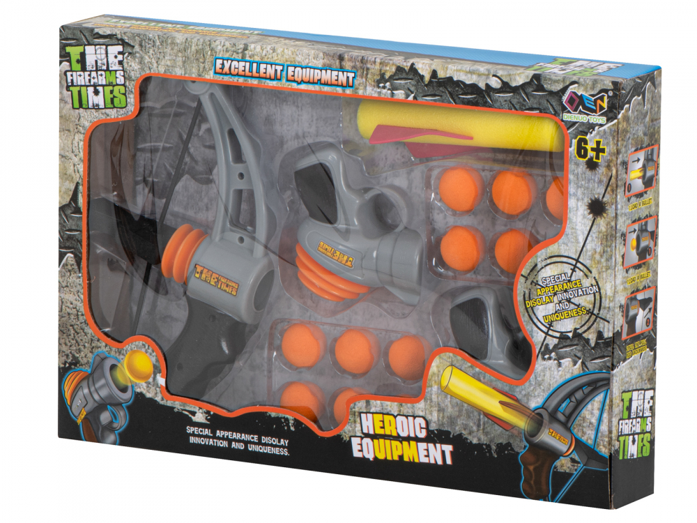 Set doua pistoale cu gloante si arc cu sageti din spuma