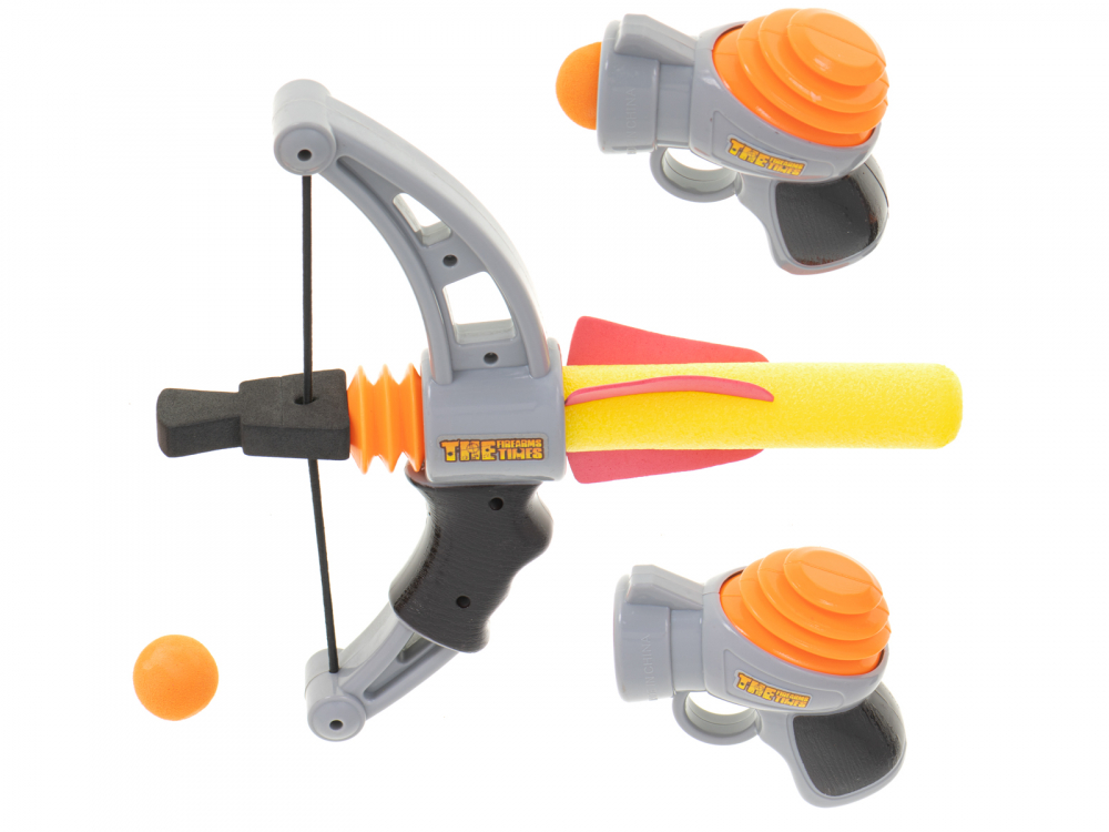 Setul de doua pistoale si o arbaleta va permite trei persoane sa se joace in acelasi timp.
