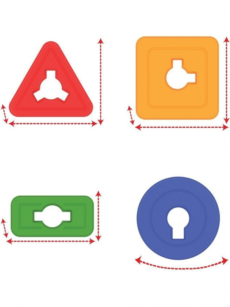 - Setul contine piese geometrice in forma de cercuri, patrate, triunghiuri si dreptunghiuri.