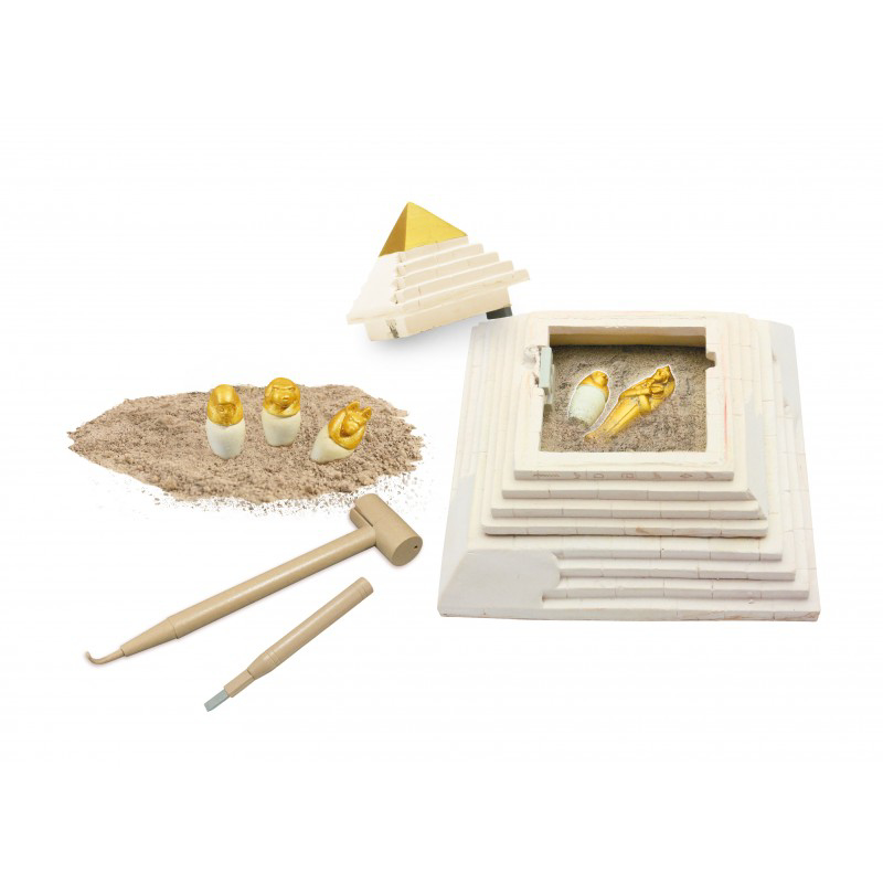 Continut: 1 piramida, 1 ciocanel cu carlig, 1 dalta, 5 comori, 1 poster A3, instructiuni ilustrate.