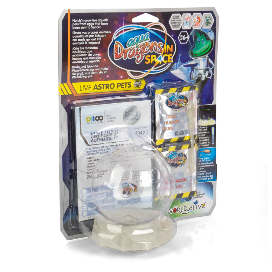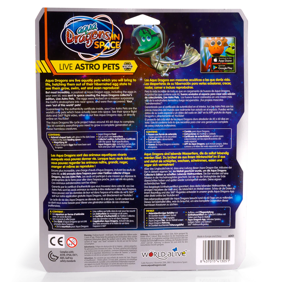 Pet-urile tale Live Astro sunt singurele din lume care au fost efectiv in spatiu! Poti vizualiza datele zborului lor si un video 360 º al zborului pe aplicatia Aqua Dragons sau pe YouTube.