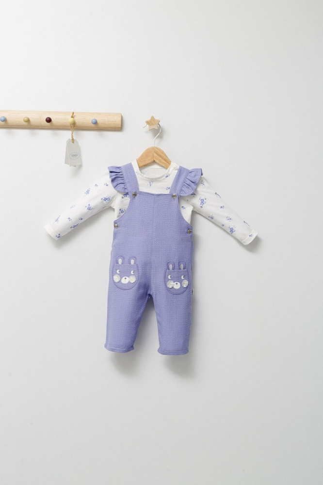 Set elegant cu salopeta si bluzita Paris Love Tongs baby Mov 3-6 Luni