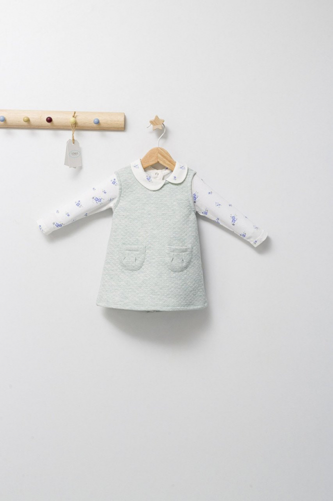 Set elegant cu sarafan si body Paris Love Tongs baby 9-12 luni Vernil